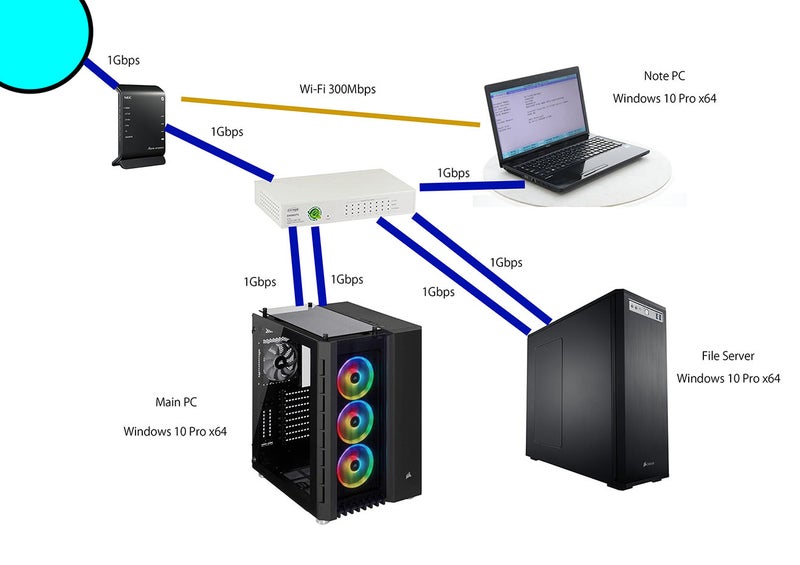 1Gbps対応のハブには、CAT6Aのケーブル二本を購入してCAT5Eのケーブルと置き換えました。