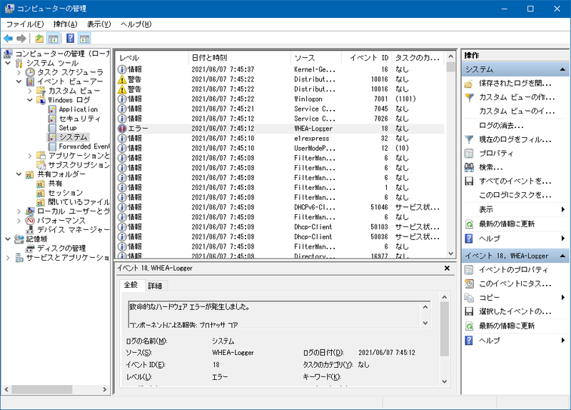 致命的なエラー WHEA-Logger ID:18でWindowsが落ちる