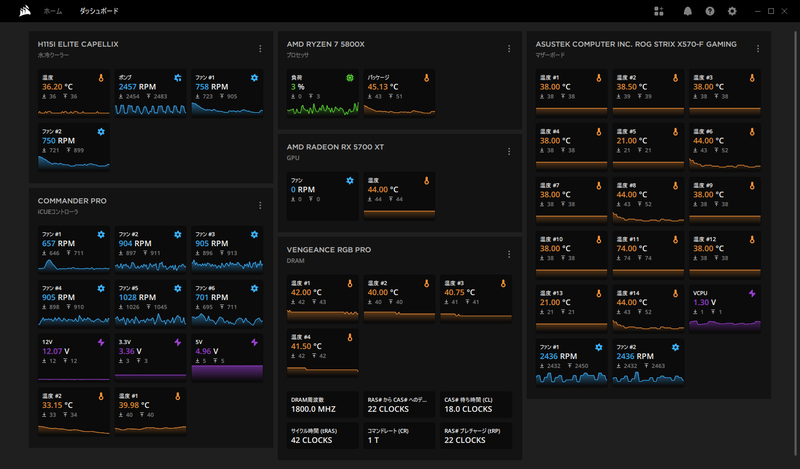 PCの冷却にも影響がでて、簡易水冷の温度が40℃を超え、CPUがアイドル時で50℃超えです。