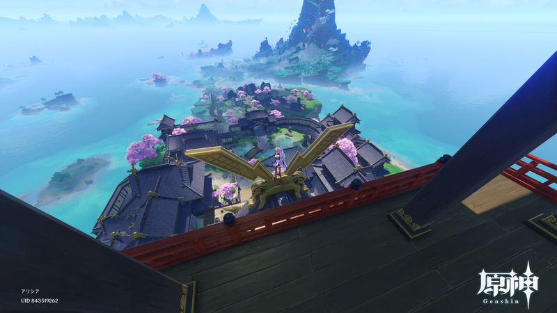 諸島エリア「稲妻」に突入して雷電将軍のいる稲妻城の頂上までは登り切れていません。あと1階が登れない。
