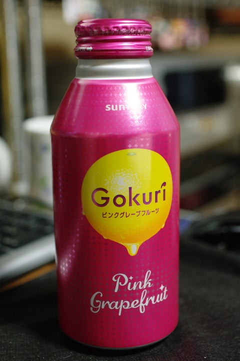 SUNTORY Gokuri Pink Grapefruit2011年02月19日Gokuriのピンクグレープフルーツです。すこし桃のような香りと甘みのあるグレープフルーツです。酸味は少ないです。パンチに欠けると言えば欠けます。のどにいがらないので飲みやすいですよ。
