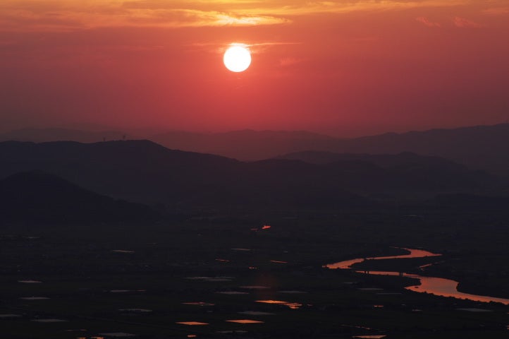 金甲山の展望台から、東には笹々川が児島湖に流れ込んでいるのが望めます。