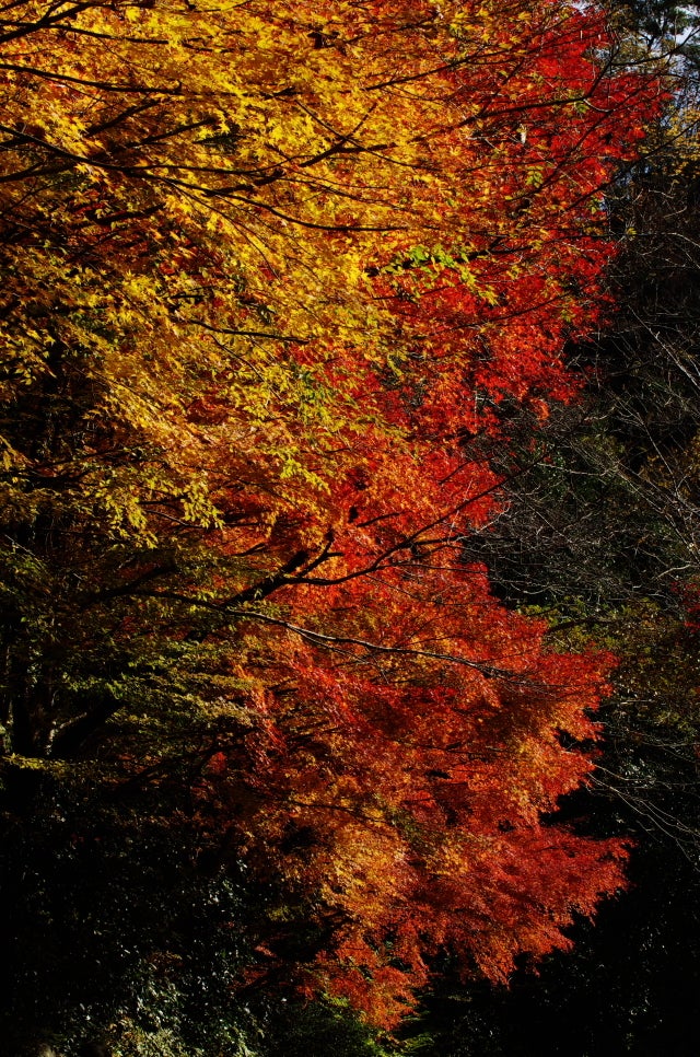 豪渓の上流の方、人が少なく落ち着いて紅葉を楽しめます。