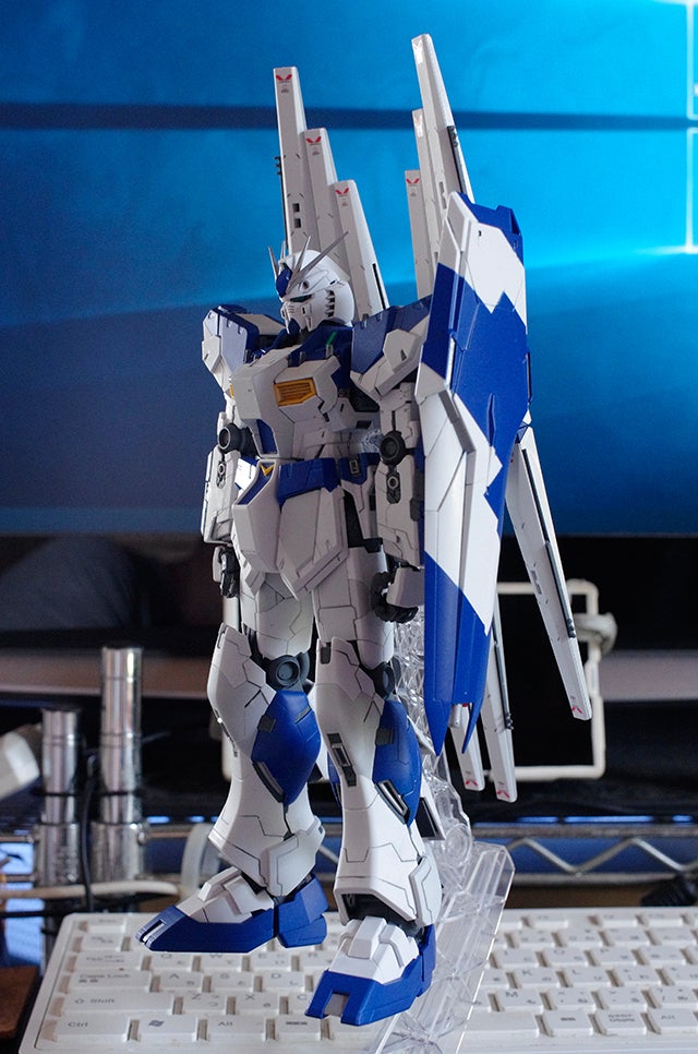 MG ν GUNDAM Ver.Ka カスタム塗装 32016年08月09日夏に併せてさわやかな色合いのνGUNDAMです。冗談です。最初に組み立てて、スライドマークなどを失敗していたνGUNDAMをカスタマイズしてみようと、Hi-νGUNDAMっぽい塗装にしてみました。バックパックは面倒くさくなっておざなりな塗装です。