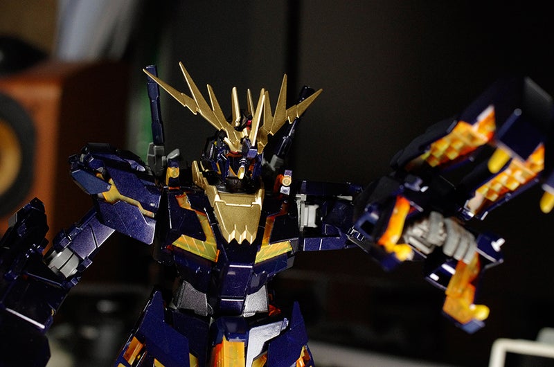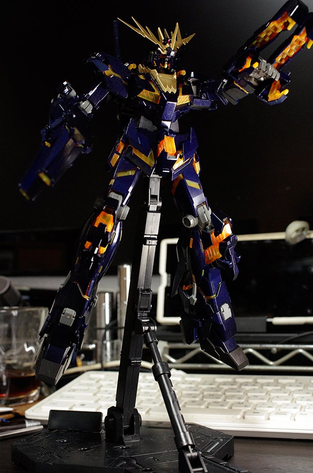 MG RX-0 UNICORN GUNDAM 02 BANSHEE その42016年09月12日組み立ては完了です。後はゲート跡をレタッチしていきますが、当分雨なので秋雨前線が遠のいてから。バンシー、ユニコーン、シナンジュを並べてみました。バンシーはディープブルーメタリックですが、黒すぎて潰れてますね。ユニコーンは白すぎてハイライトは飛んでるし。しかし3体並べて飾る場所がないや。