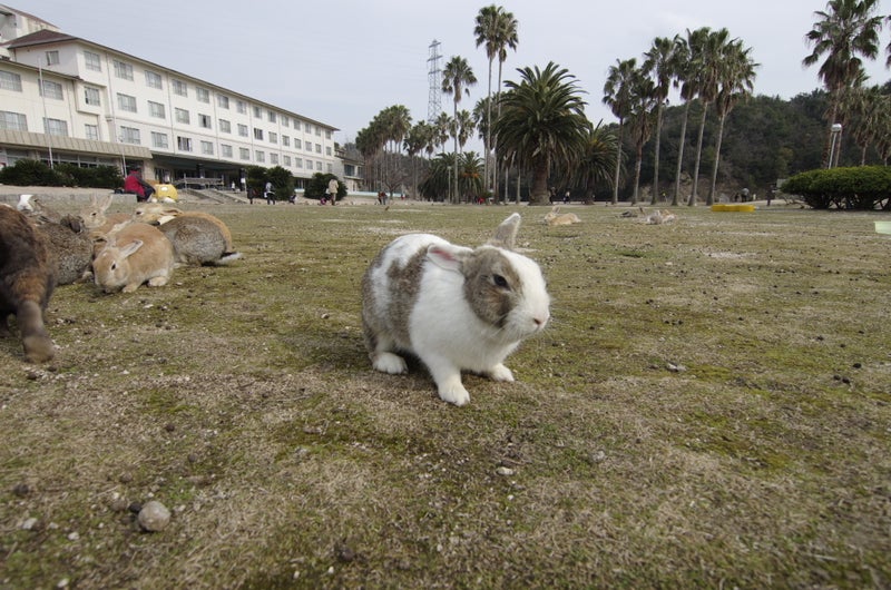それからこのアヲハタのある港からフェリーに乗ると、兎の楽園「大久野島」に行けます。