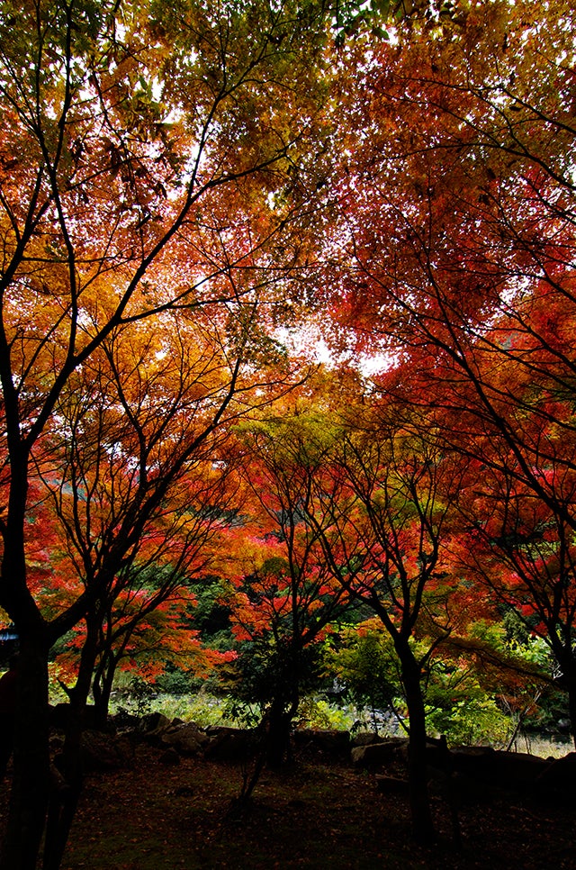 宇甘渓 - 2016/11/152016年11月15日宇甘渓(岡山県加賀郡吉備中央町)今日は曇りでした。フラットな光で落ち着いた色調になります。コントラストが高いモードにすると、葉全体が色鮮やかに成ります。