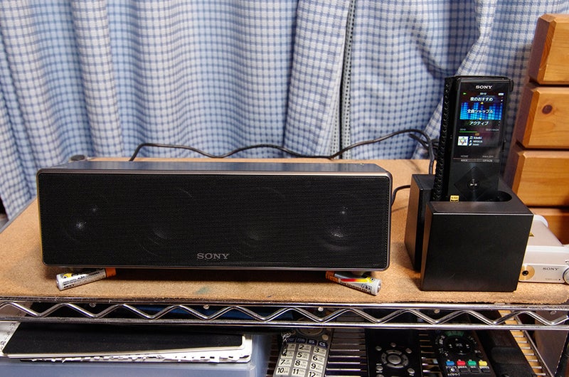スピーカーの足の下に単三形電池を挟み込んで、耳の方へ角度をつけてみました。