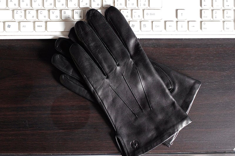 手の甲の大きさに合わせ26cmで黒染の羊革の手袋を選びました。