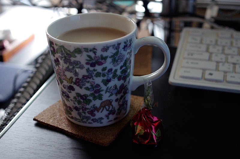 仕込み中2017年04月07日明日の昼に振る舞う料理はカレー。牛すじ肉、炒めタマネギ、にんじんを弱火で煮込み中。煮込み中の間に、貰った珈琲の粉をドリッパーにセットして、珈琲を抽出。珈琲を低温殺菌牛乳で割って、珈琲牛乳を淹れて、一息。赤玉ポートワインのチョコレートを添えて。今日は、雨が降ったり止んだり。岡山の平野部は桜が満開。火曜まで雨の予報。撮りに行く前に散ってしまいそう。しょんぼりするので、妹の笑顔でも想像して元気を出します。