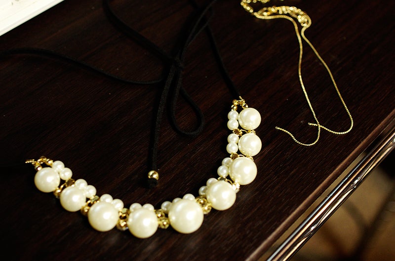 母に頼まれて、パール調のネックレスのチェーン部分を外し、黒紐に交換しました。