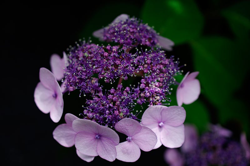 珍しい形をした紫陽花が咲いています。