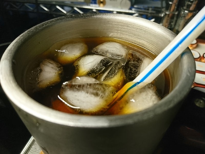 水出しコーヒー2018年07月06日ブルーマウンテンブレンドを60グラムほど挽いて、ポットに入れて、500ccぐらい水を注いでかき混ぜ、8時間ほど冷蔵庫で抽出。お湯出しより酸味が強いです。旨味が解りづらいです。アイスで氷を入れるなら少し飲みやすくなるかも。カフェインとタンニンが出難いらしいけど。酸味と苦味が口に残るので、好き好きだな。僕としてはお湯出しの方が好きかも。