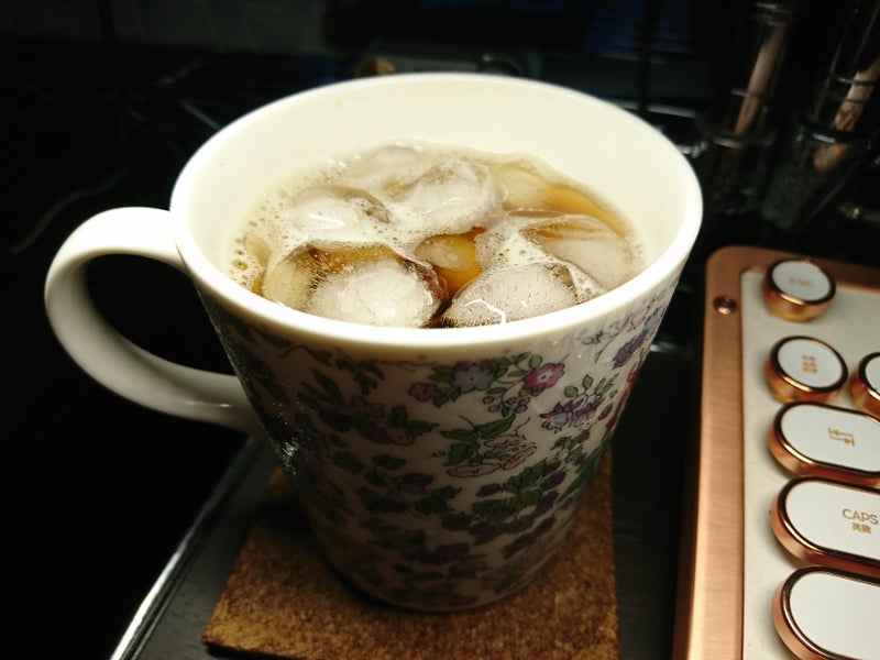 カルディファーム アイスブレンド2018年07月19日何がベースか分かりませんが、カルディファームのアイスブレンドです。夏場で暑くて豆から油分が溶け出してきています。それでもこのコーヒーはすっきりとしたキレがあります。