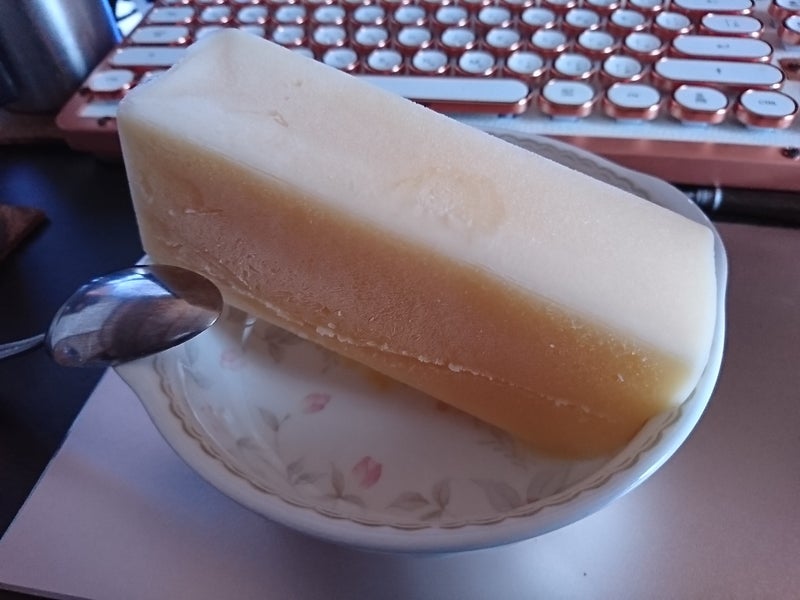 豆乳アイス2018年08月27日豆乳のフルーツミックスを凍らせてアイスにしました。乳脂肪が無いので安心して食べられます。後味もすっきりしています。豆乳飲むのが苦手で、これならいけそうです。ダイエットしている人にも良さそうです。