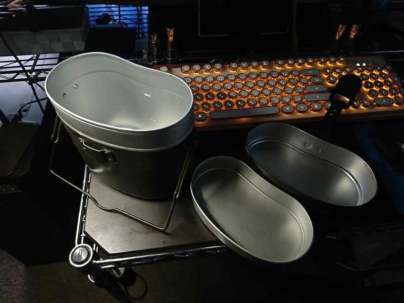 キャンプ道具2018年09月25日30数年前に買って、ちょっとだけ使った飯盒とアルミ食器セットが出てきました。ちゃんと使えそうなので使ってみます。当時は飯盒の蓋がフライパンになることを知らなかったし、ご飯の炊き方もろくに知らなかったので、今度からは活用してみます。お米も売れたので、テントを買う資金も出来ました。実現に向けて環境が整いつつあります。