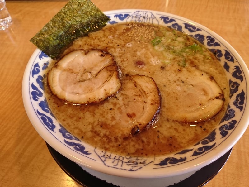 お昼ごはんは、博多豚骨ラーメンの「ちゃーしゅうや亀王」で「昔味」の「厚切りチャーシュー」載せの麺硬めで、鶏の唐揚げ3つを頼みました。