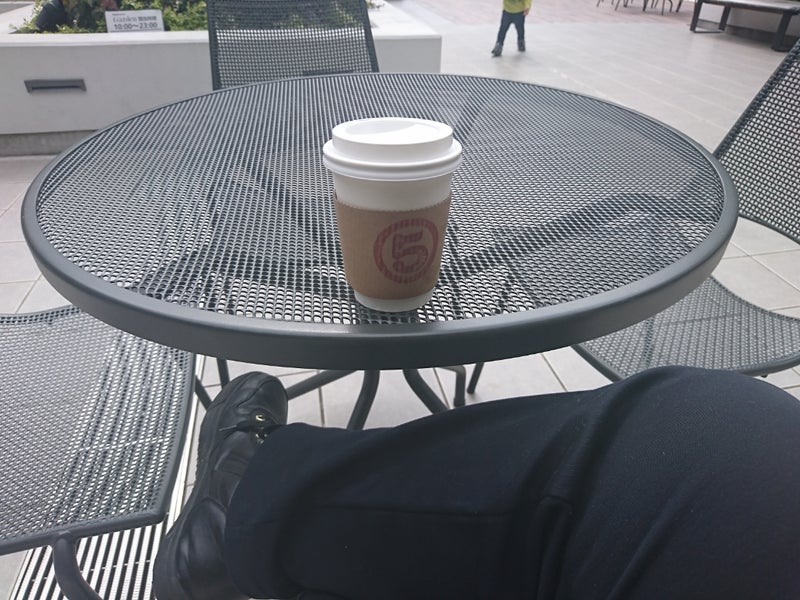 ショッピングモールのオープンテラスでホットコーヒーを飲みつつ時間つぶし。