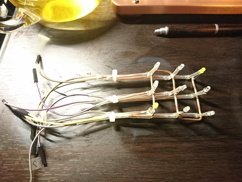 あああ2019年06月16日2時間掛けてLEDを9個半田付けしました。通販で買った白色のLEDが1個完全に故障、6個が点滅させると徐々に暗くなっていってやがて点灯しなくなります。2個は黄色のLEDですが、これは店頭で買ったので正常な動作をします。と言うことで部品がないのでまた買いに行かなくちゃ。疲れた。