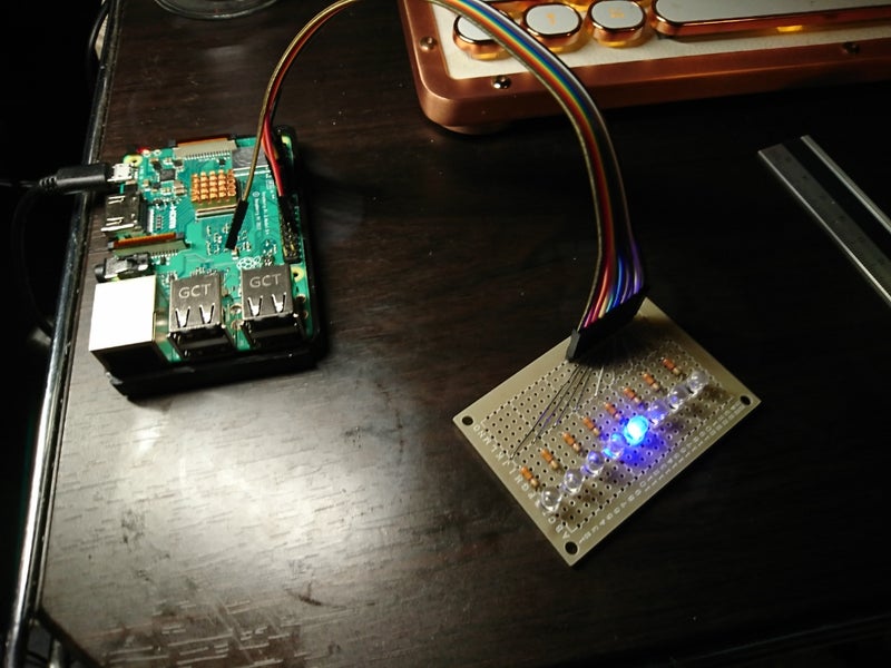 8ビート2019年06月20日8ビートじゃなくて8ビットですが。16個のLEDを繋げたものも作りました。Raspberry piの幾つかのGPIO端子は弱電圧で微量の電流が流れているので、うっすらと歯抜け状にLEDが光ってしまいます。さて今度はプログラムを改変しておもしろい光方をさせてみます。まあ元SEなのでプログラムの方は簡単ですが。