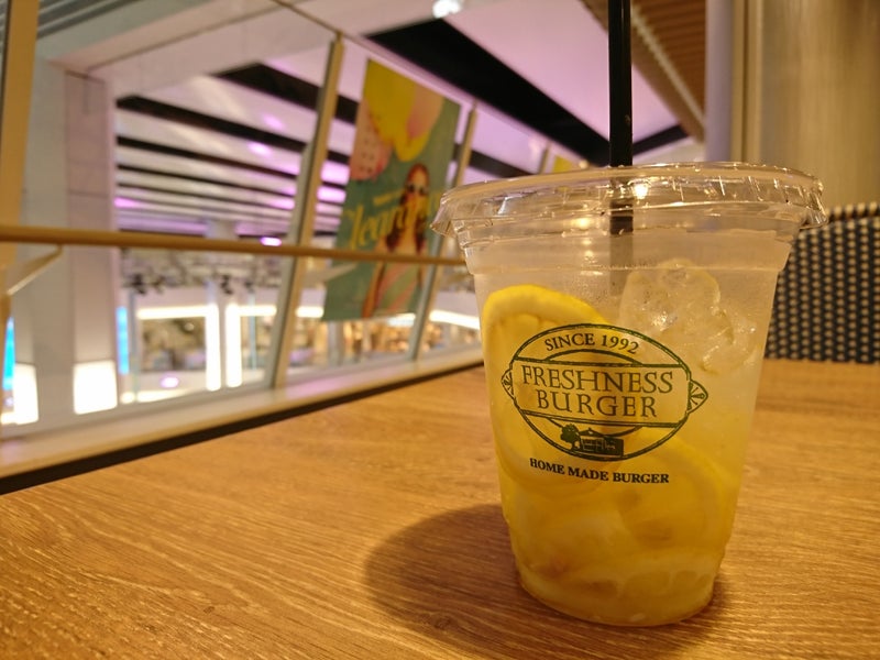 ショッピングモールで贈り物と自分用のカップを買って、レモネードを飲みながら時間つぶし。
