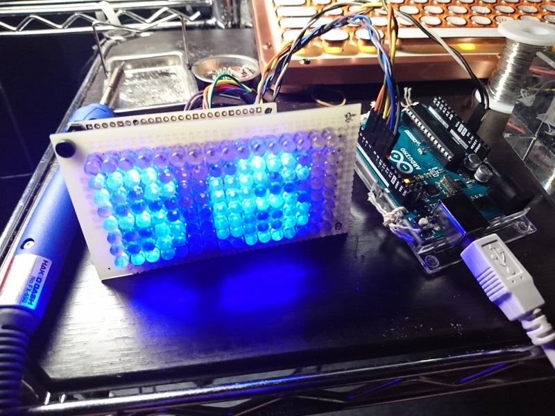 まだ2019年07月23日128個のLEDを付け終わって、Arduino UNOで制御しているのですが、シフトレジスタへのデータ送出が上手く出来ていません。だいたいの原因は分かっているのですが、プログラムを書くのがなんとなく面倒です。明日、頑張ります( ̄∇ ̄)