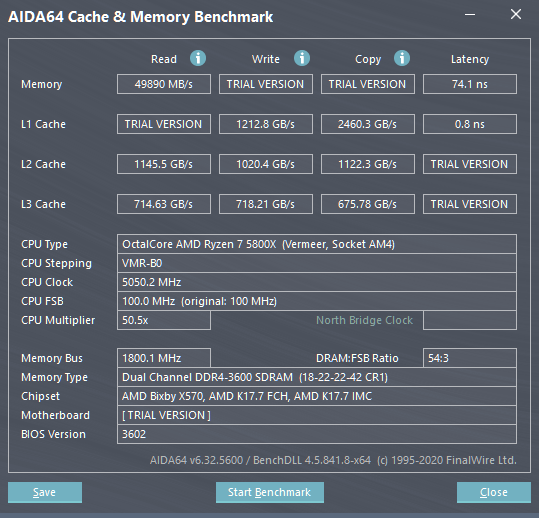 今回の更新では、RYZEN 5000シリーズで、AIDA64のメモリキャッシュベンチマークをしたときに、L3キャッシュの速度が大幅に向上します。