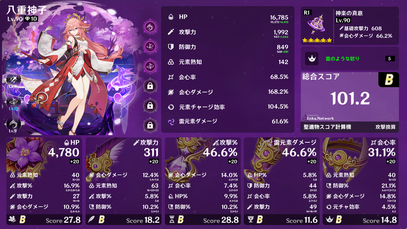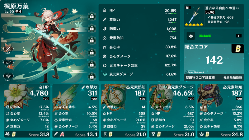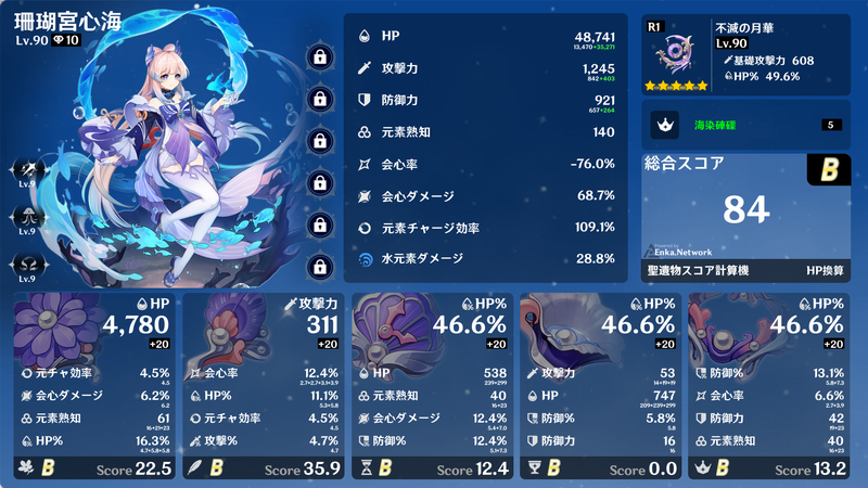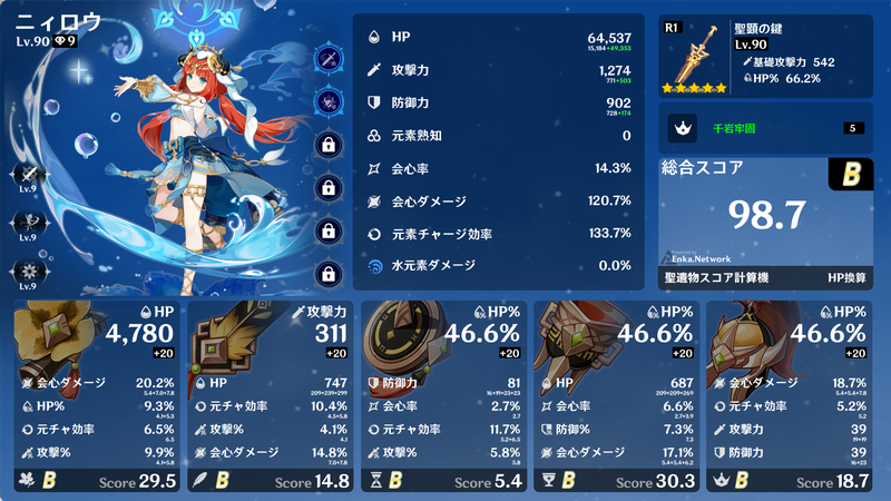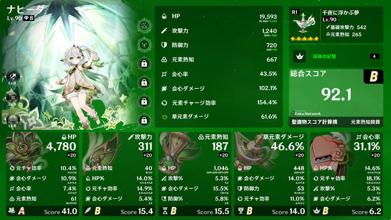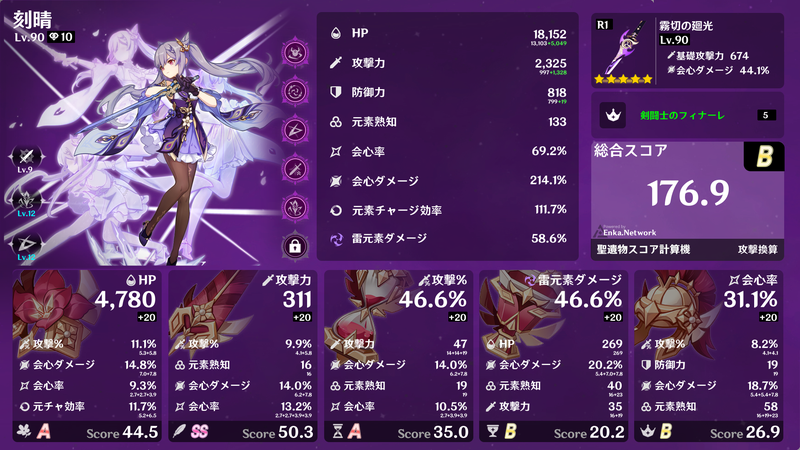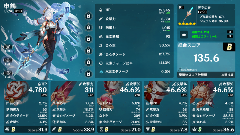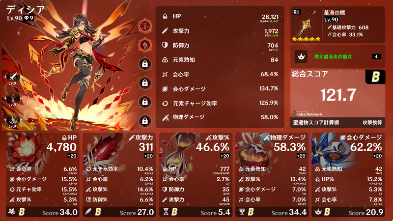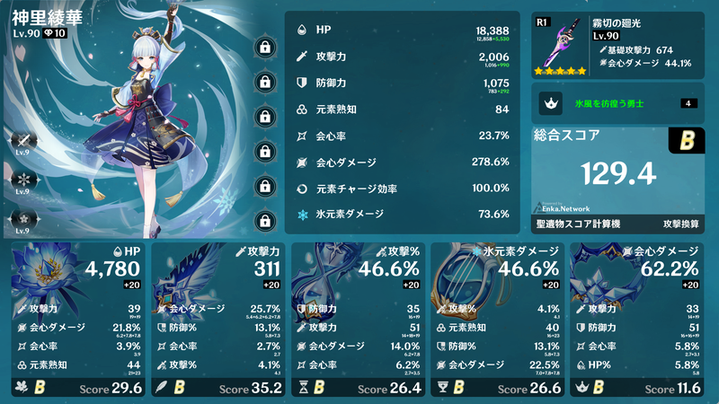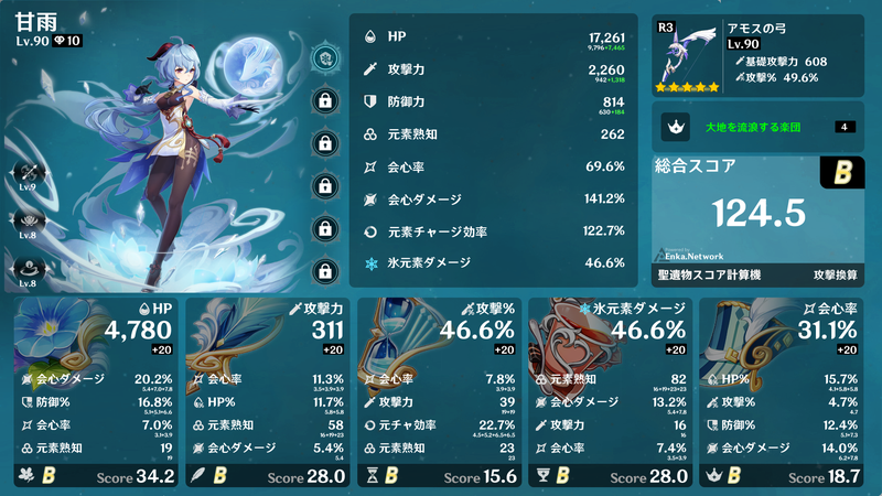4セット効果、2+2セット効果などを得られるように集めるだけでも大変ですが、メイン数値が概ねそろったところで深境螺旋でギリギリ使えるようになり、サブ数値が厳選できればベテランの領域でしょうか。