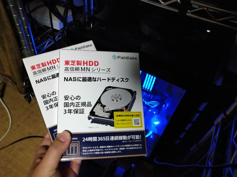 TrueNASで構築したファイルサーバーに搭載している2012年製のWesternDigital社のWD GREEN 3.0TBがセクターエラーを吐くようになり使えなくなったので、東芝の4.0TB HDD(CMR)を二台買って交換しました。
